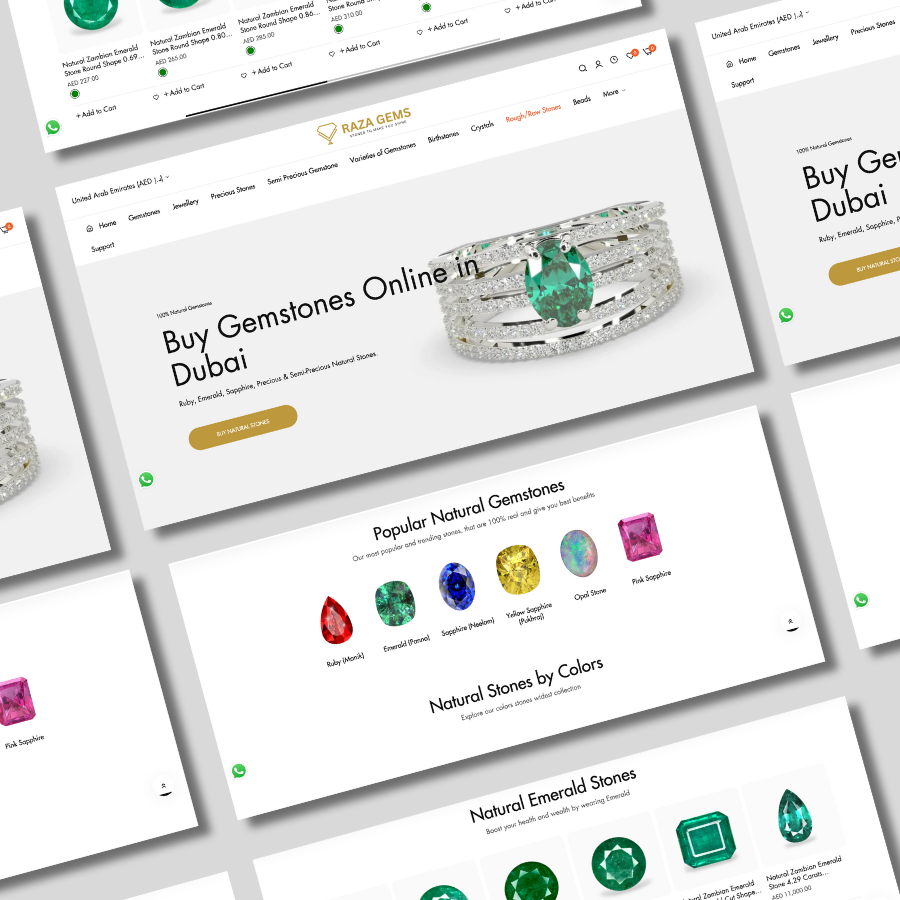 A complete E-commerce solution for a Gemstone company with services including web design & development, SEO, automations, and more.