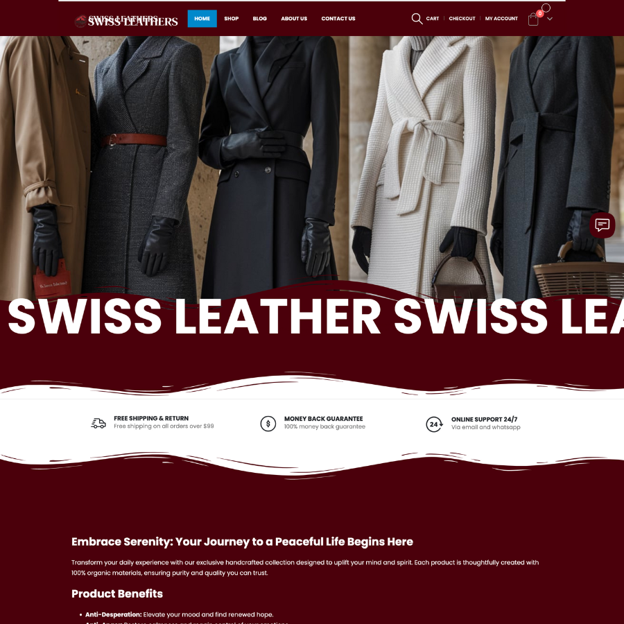 A custom Webflow e-commerce website for a premium Swiss Leather Collection, SEO-friendly and mobile-optimized.