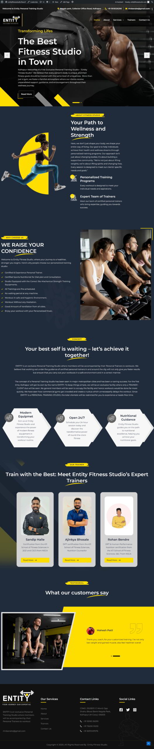 Entity Fitness Studio delivers a dynamic and engaging website experience, designed with modern aesthetics and smooth navigation to highlight fitness services effectively.