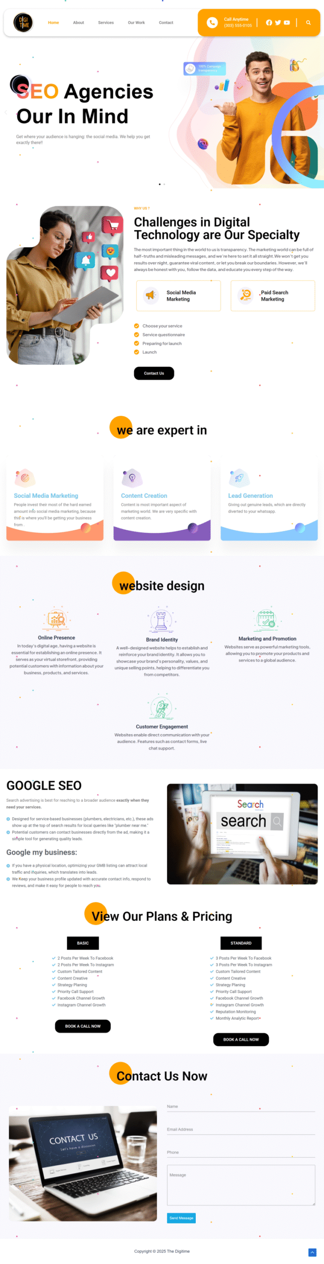 The Digitime features a modern and responsive website, built to highlight digital marketing expertise with a clean layout and seamless navigation for an engaging user experience.