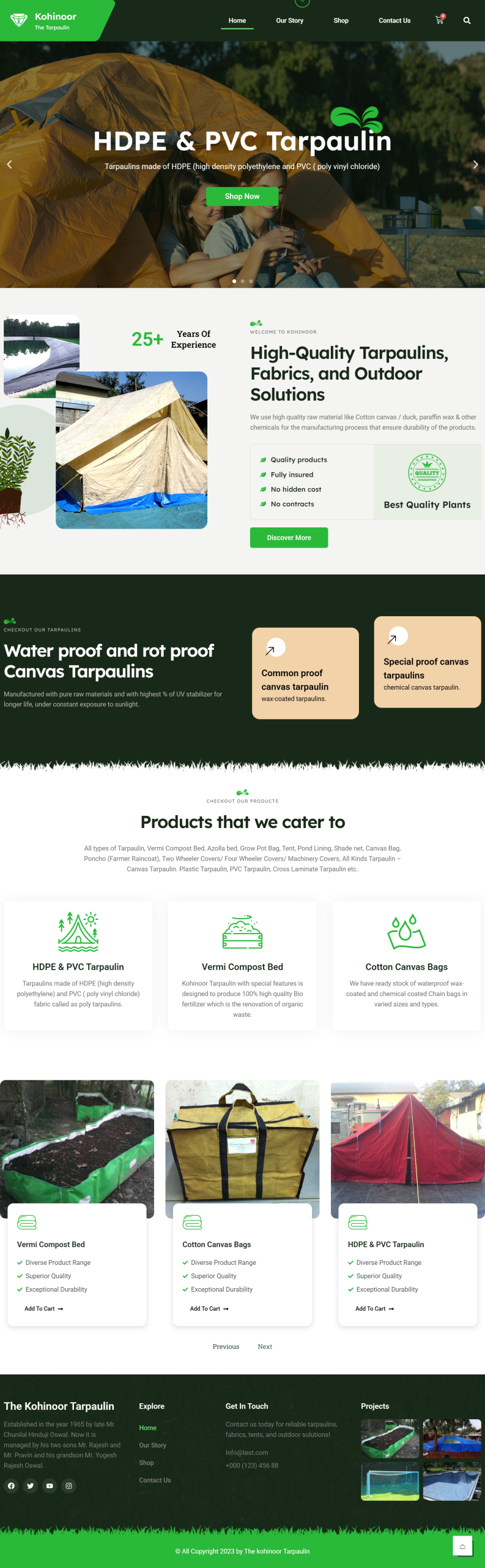 Kohinoor showcases a professional and user-friendly website, built to highlight premium tarpaulins and fabrics with clear navigation and a modern design.
